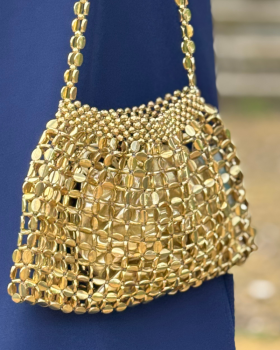 20,00 €Bolso con diseño en cuentas metálico, dispone de bolsito interno a juego con cremallera y una asa para poder llevarlo sobre el hombro y adicionalmente una cadenita opcional, un complemento ideal para brillar aún más.