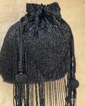 32,00 €Bolso tipo bombonera con flecos de piedras en color negro. Asa corta