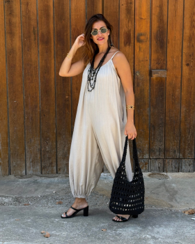 17,99 €Mono bombacho de tirantas y escote redondo. Bolsillos laterales y pernera con terminación en puño con elástico. Escote de espalda caído y redondo.