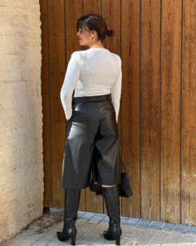 24,99 €Bermuda de tiro alto con bolsillos laterales. Cintura con trabilla y cinturón a tono con hebilla dorada. Detalle de costura frontal.