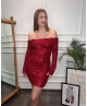 39,99 €Vestido mini de escote bardot y manga larga acampanada.