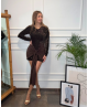29,99 €Vestido mini de cuello redondo y manga larga con tejido de terciopelo y lentejuelas. Detalle de lazada a contraste en la parte de la falda. Cierre trasero mediante un botón. Forro interior.