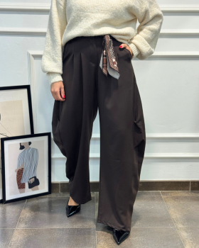 19,99 €Pantalón de tiro medio y cintura de trabilla con cinturón. Bolsillos laterales. Detalle de pliegues en el lateral.