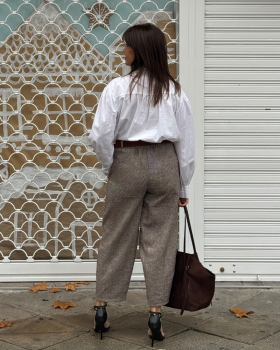 27,90 €Pantalón de tiro alto de cintura con trabillas y cinturón. Bolsillos laterales.