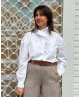 23,90 €Blusa de cuello subido y manga larga un poco abullonada. Cierre frontal mediante botones y detalle de volante.