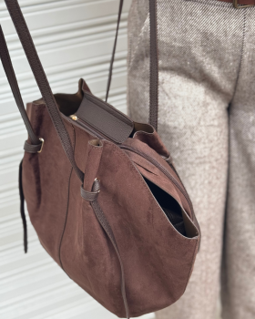 28,00 €Bolso formato maxi shopper antelina. Doble asa de hombro. Neceser interior de material con cremallera y bolsillos. Cierre mediante cremallera