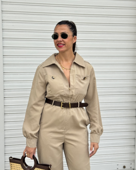 45,99 €Mono de cuello solapa y manga larga con terminación en puño. Bolsillos en la parte del pecho con botón. Cierre frontal mediante cremallera. Cintura elástica con trabillas. Pantalón recto con bolsillos laterales. Contiene cinturón.