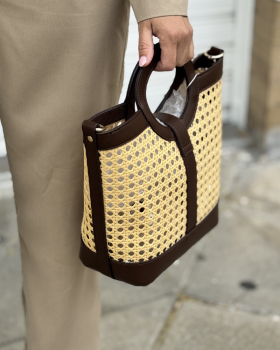 26,99 €Bolso de rejilla con detalles de polipiel. Contiene asa para colgar y neceser dentro. Cierre mediante click.