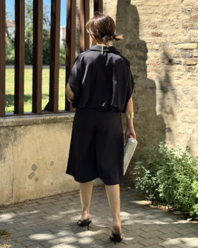 49,99 €Conjunto de dos piezas compuesto por camisa oversize de cuello solapa y manga corta caída. Cierre mediante botones frontales. Pantalón tipo bermuda de tiro alto. Cintura con trabillas y bolsillos laterales.
