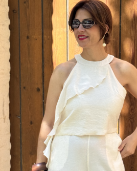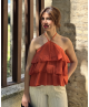 12,99 €Top de cuello halter con detalle de volantes en capas. Parte trasera lisa y con elástico. Tirantes finos.