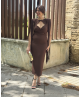 159,00 €Vestido de corte midi sin mangas con detalle de flecos y maxi hombreras. Escote geométrico con abertura central y dos lazadas grandes para poder poner de diferentes formas. Falda recta con abertura trasera. Cierre trasero mediante cremallera invisible. Forro interior.