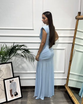 Vestido ESCOTE CASCADA Celeste