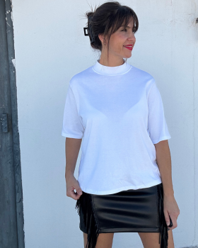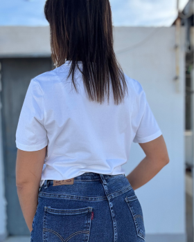 Camiseta de cuello redondo y manga corta con terminación en vuelta. Detalle de estampación a contraste.