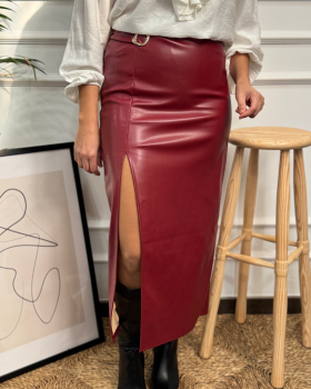 16,00 € / 31,99 €Falda midi de polipiel de tiro alto. Detalle de hebilla en la cintura en color dorado. Abertura frontal. Cierre trasero mediante cremallera invisible.