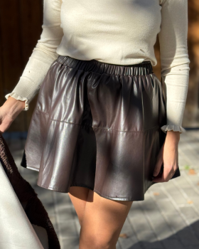 12,95 € / 25,90 €Falda corta de vuelo en tejido de polipiel. Cinturilla elástica. Detalle de costuras.