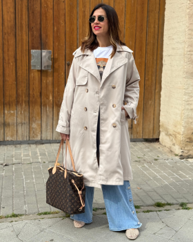 25,13 € / 35,90 €Gabardina de cuello solapa y manga larga acabada con trabilla y botón. Bolsillos delanteros de vivo. Cierre frontal cruzado con botones y cinturón del mismo tejido. Forro interior