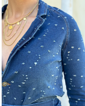 11,96 € / 29,90 €Chaqueta de cuello solapa y manga larga. Cierre frontal con botones. Detalle de rotos en el tejido.