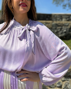 10,00 € / 22,90 €Blusa satinada con manga ranglán. Puños con terminación elástica. Lazada al cuello.