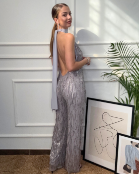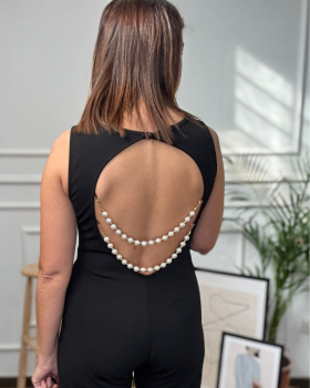 25,90 €Mono sin mangas entallado en la parte superior y pantalón de pierna ancha. Espalda descubierta con detalle de cadena de perlas