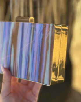 Bolso de madera y nácar. Modelo diferente y especial para cualquier look de invitada. Incluye cadena para colgar.