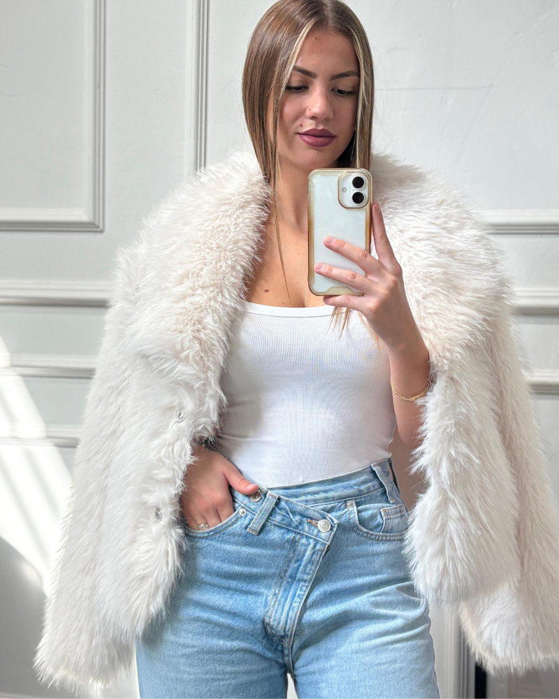 Abrigo de pelo de cuello solapa y manga larga. Bolsillos laterales. Forro interior a tono. Cierre frontal con botones metálicos invisibles.